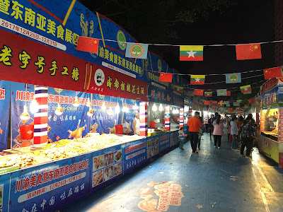 Večeře proběhla v klasickém čínském stylu, Číňané si potrpí na přípitky a poklepávání po ramenou, jak se jim organizace vydařila ... celkem nuda, takže jsem byla ráda, že to moc dlouho netrvalo a byla jsem v 8 hodin volná ... vydala jsem se na místní noční trh, který byl sice malinký, ale celkem zajímavý ... neodolala jsem lákavým dobrotám, hlavně těm sladkým 🙈